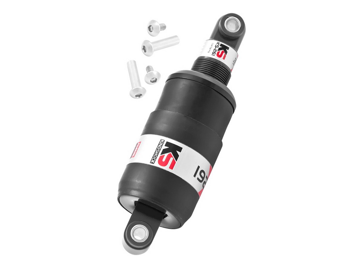 Zadnji amortizer KS-261 zatvoreni 3822003,je najčešće namenjen brdskim biciklima koji se kreću po lošijem terenu i predstavljaju nadogradnju prednjeg, zbog toga što se veći deo vibracija amortizuje na prednjem točku. Postavlja se paralelno uz horizintalnu ili vertikalnu cev rama, u centralnoj ravni simetrije. Rastojanje između otvora kroz koje se pri montaži povlače osovine kojima se amortizer vezuje za ram je 165mm, a tvrdoća opruge mu je 650LBS. Izrađen je sa zaštitnim gumenim kućištem i spiralnim oprugama.